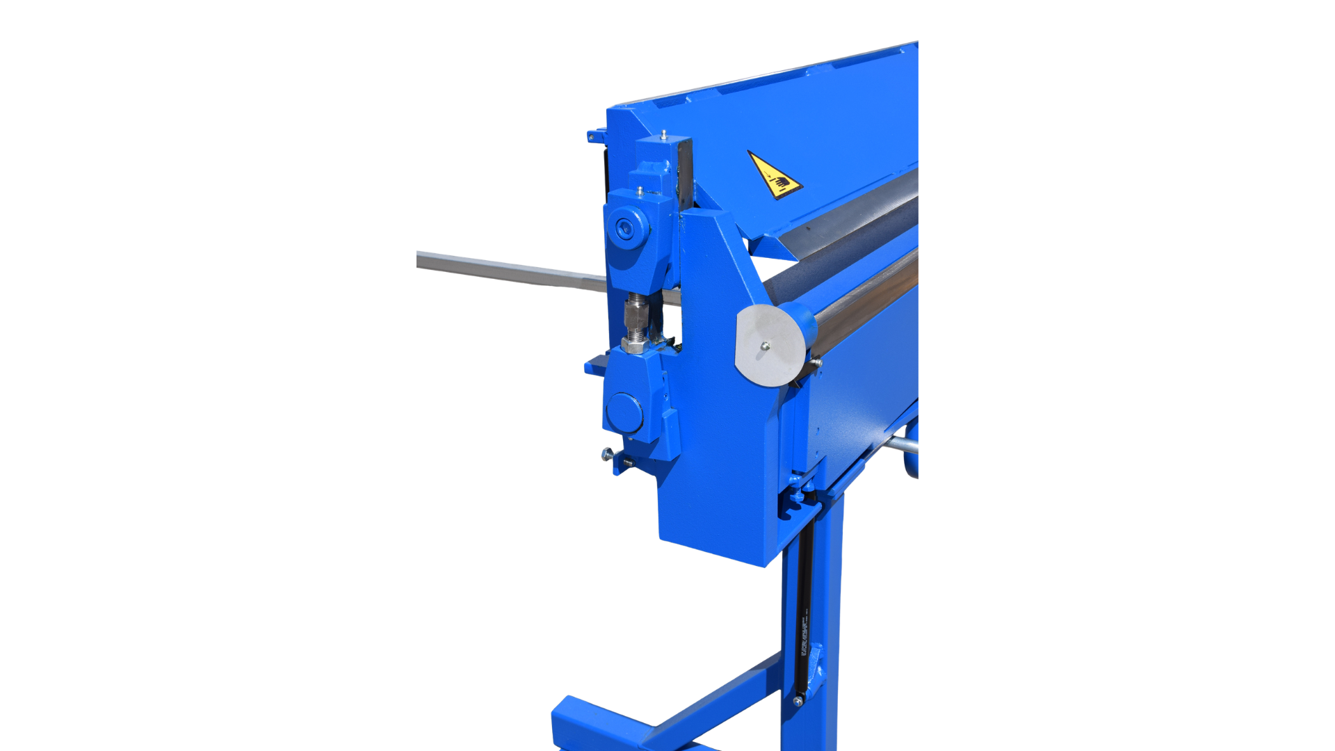 Operacji zaginania dokonuje się poprzez obrót za pomocą uchwytu o określoną wartość kątową belki gnącej. Kątomierz zamocowany po lewej strony zaginarki patrząc od przodu wskazuje aktualny kąt zagięcia blachy.
